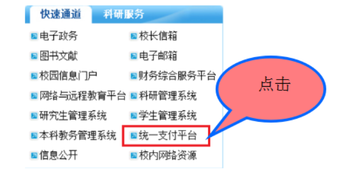 登录通道二:计划财务处网站右上角“统一支付(缴费)平台”