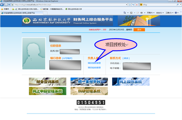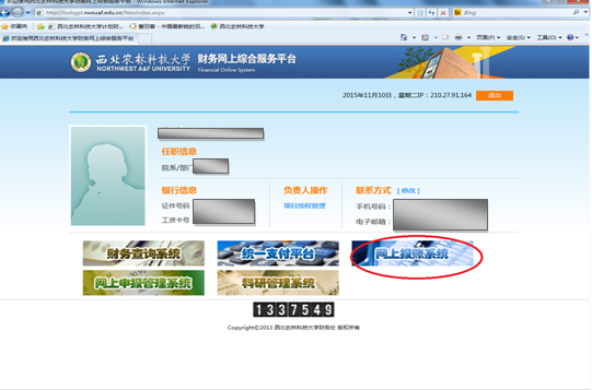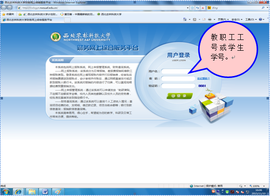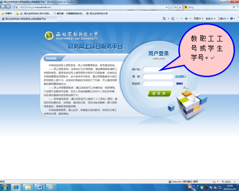 1、登陆财务网上综合服务平台(http://cwbgpt.nwsuaf.edu.cn/)