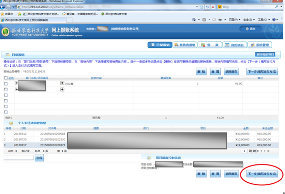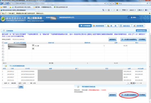 登陆财务网上综合服务平台(http://cwbgpt.nwsuaf.edu.cn/)。