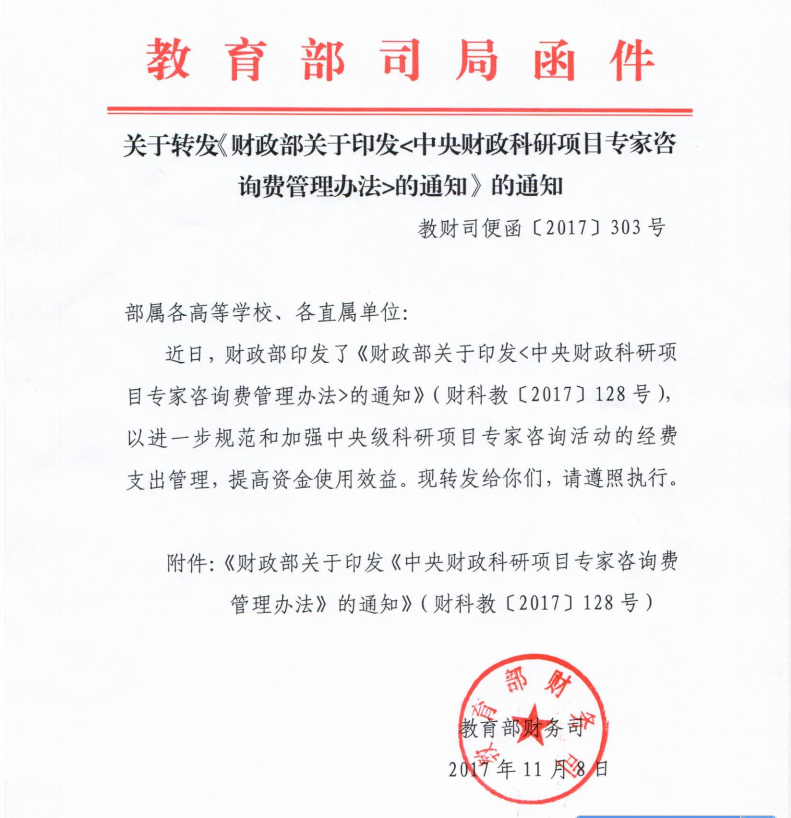 相关附件:中央财政科研项目专家咨询费管理办法-财教科【2017】128号.pdf