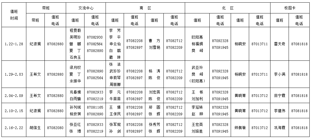 注:1.值班时间为每天上午8:30-11:30,下午14:30-17:30。